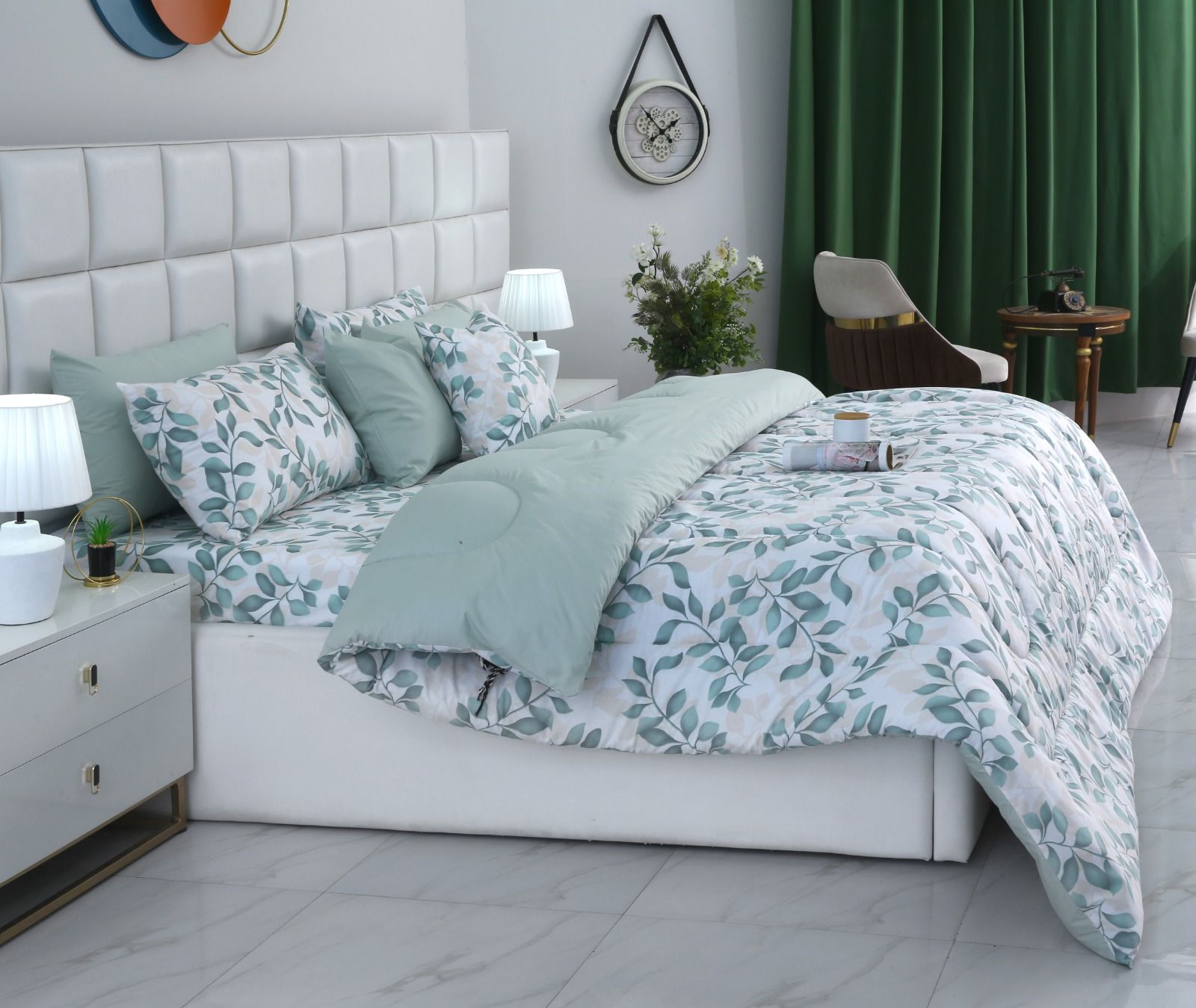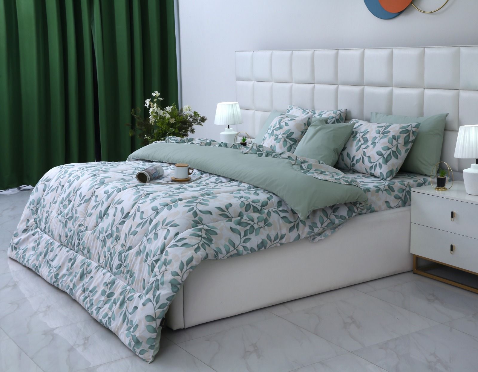 - Decorative pillows complete this collection with manipulation in corresponding colors to the top of Your bed.